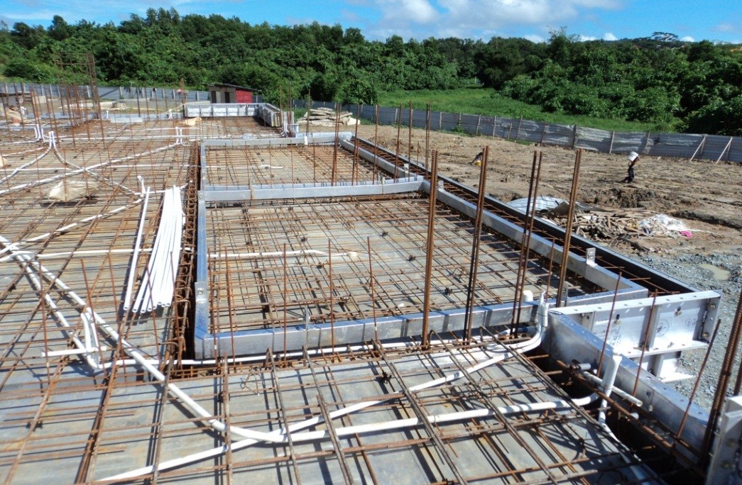 Installation of reinforcing bars on the slab panels before casting the concrete